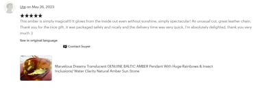 Premium Quality genuine 100% pure & natural million years old Baltic Amber. From its native country in the Baltic region - real Amber origin, where it formed in Nature. Carefully handpicked with Love, completely authentic, and handcrafted. We bring it straight to you!
